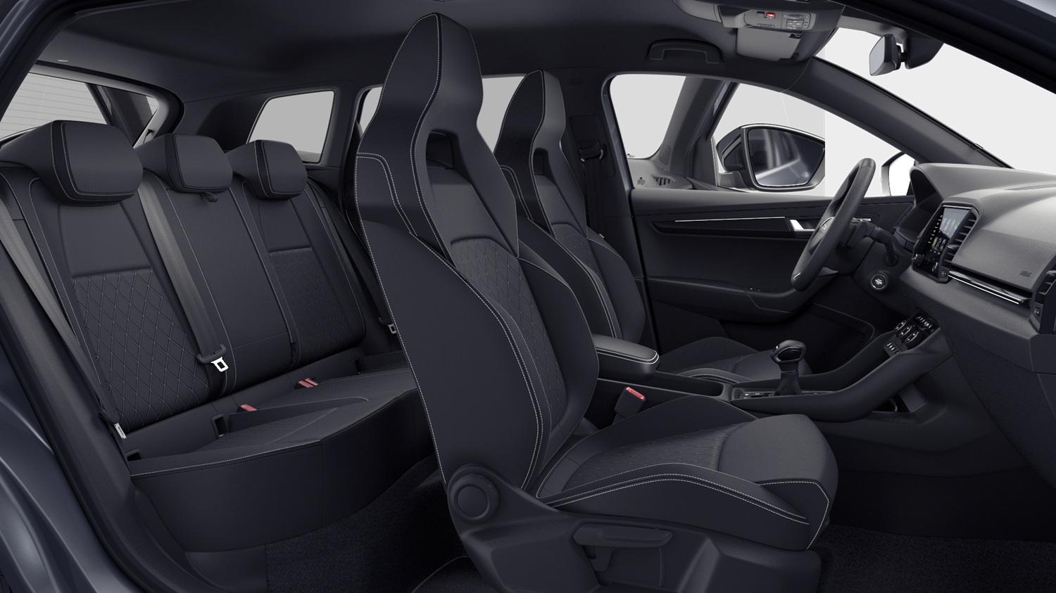 Innenausstattung Design Selection SPORTLINE, Sitzbezüge aus Stoff, Schwarz, Armaturentafel und Türverkleidung Schwarz, Dekorleisten „Piano-Black“, Tür-Dekor „Carbon-Optik“, Dachhimmel in Schwarz