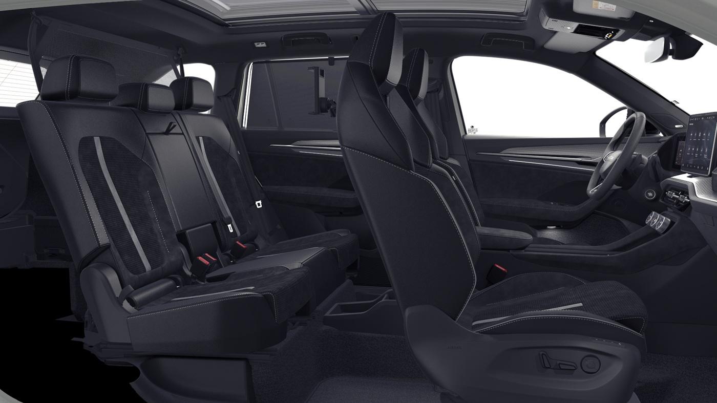 Innenausstattung Sportsitze vorne mit Microfaserausstattung in Grau / Schwarz, Ziernaht in Grau, Dachhimmel Schwarz
